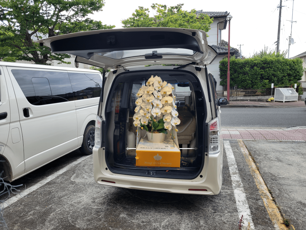 当社の専用車両で胡蝶蘭を運び 一緒にお届けするサービスです。