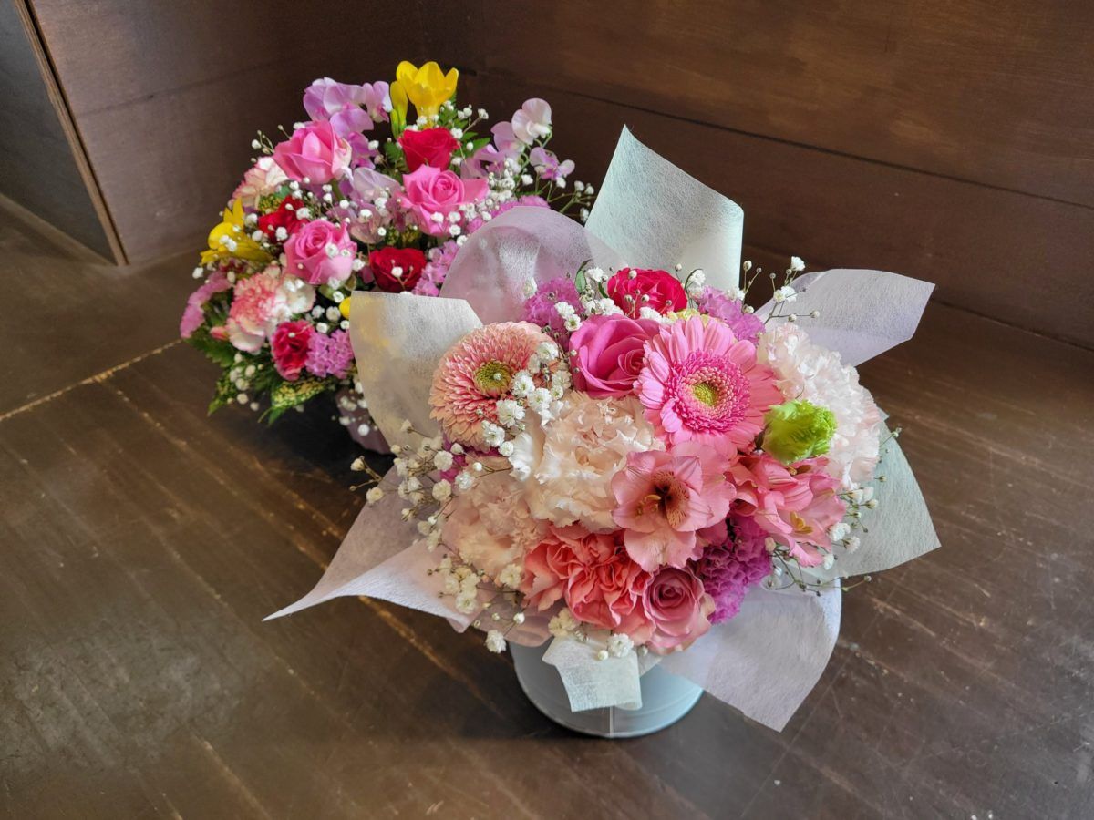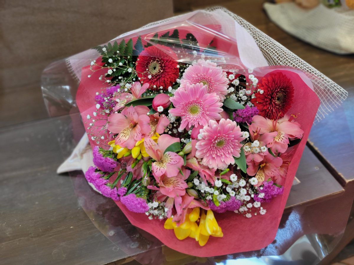 花束は手で持つ部分に大きさにもよりますが お水が含まれています