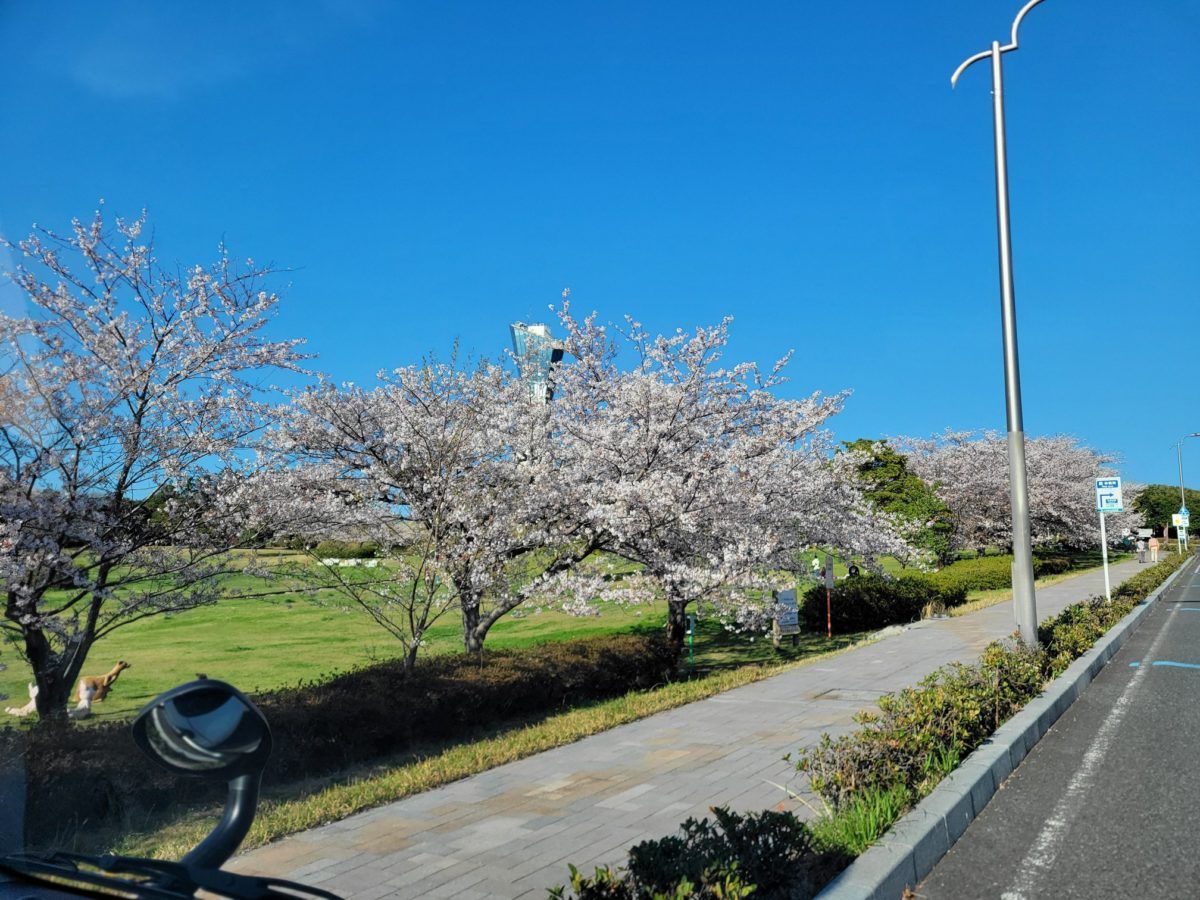 真っ青な空にピンクの桜 こんな素晴らしい光景は1年に1回しか見れませんね