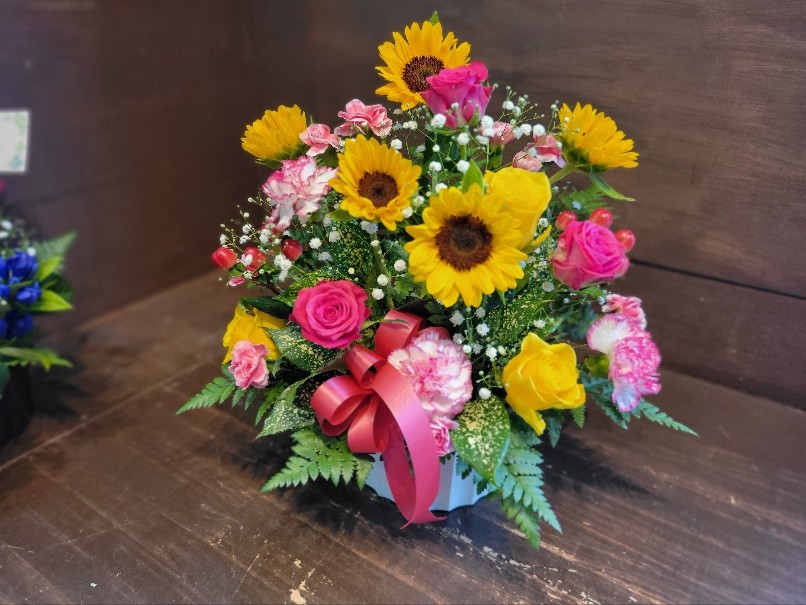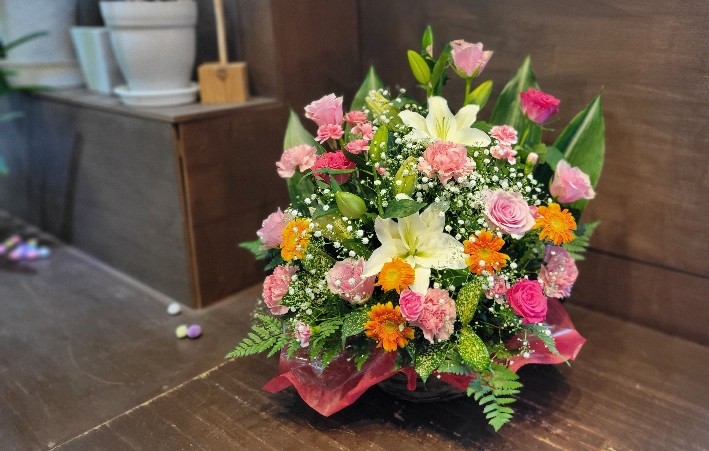 こちらのアレンジはいわき・ら・ら・ミュウさんにお届けのお祝いのアレンジメントです