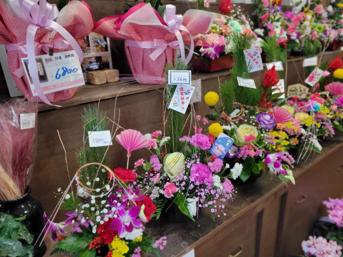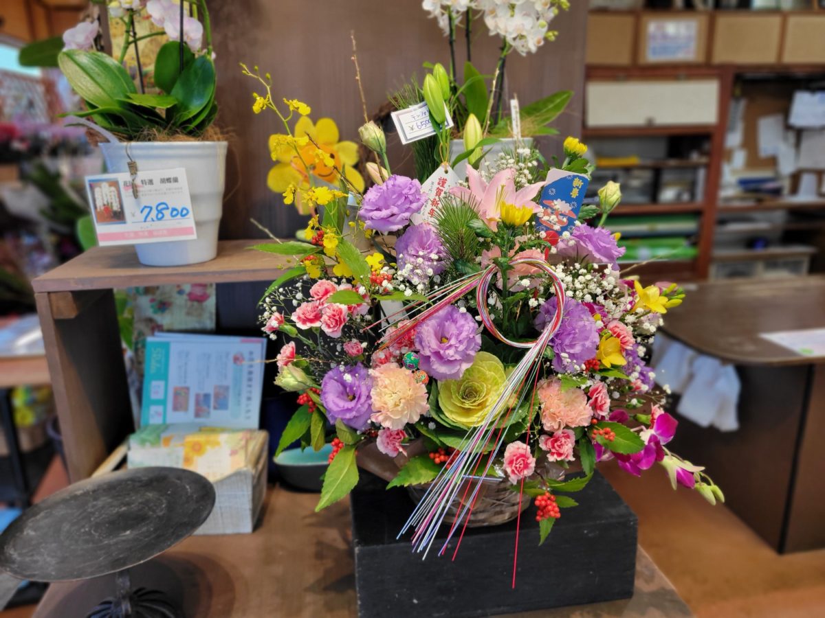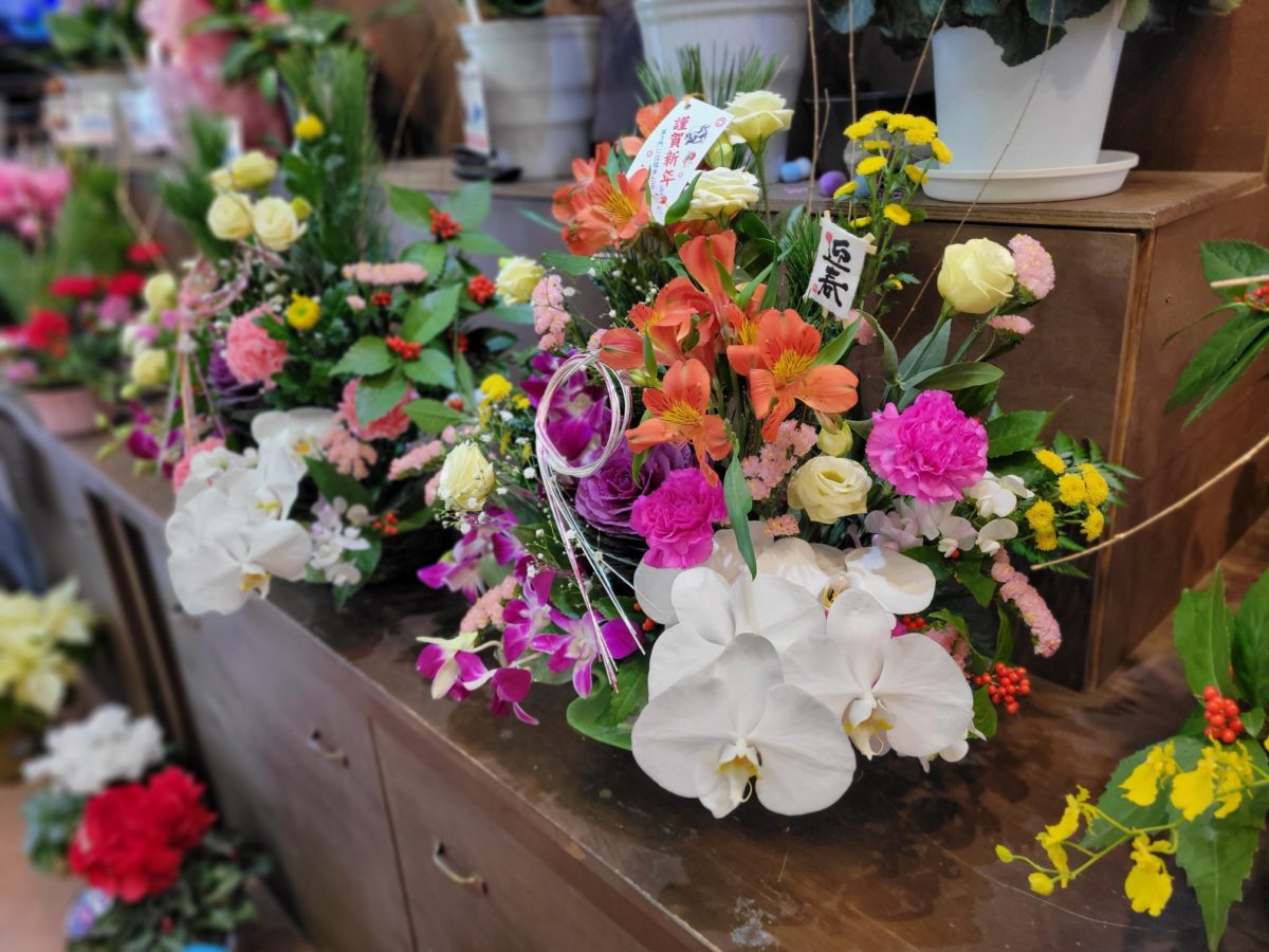 これから小名浜の諏訪神社様へ ご奉納するお花が お店の前に置いてあります
