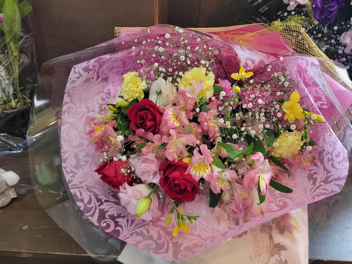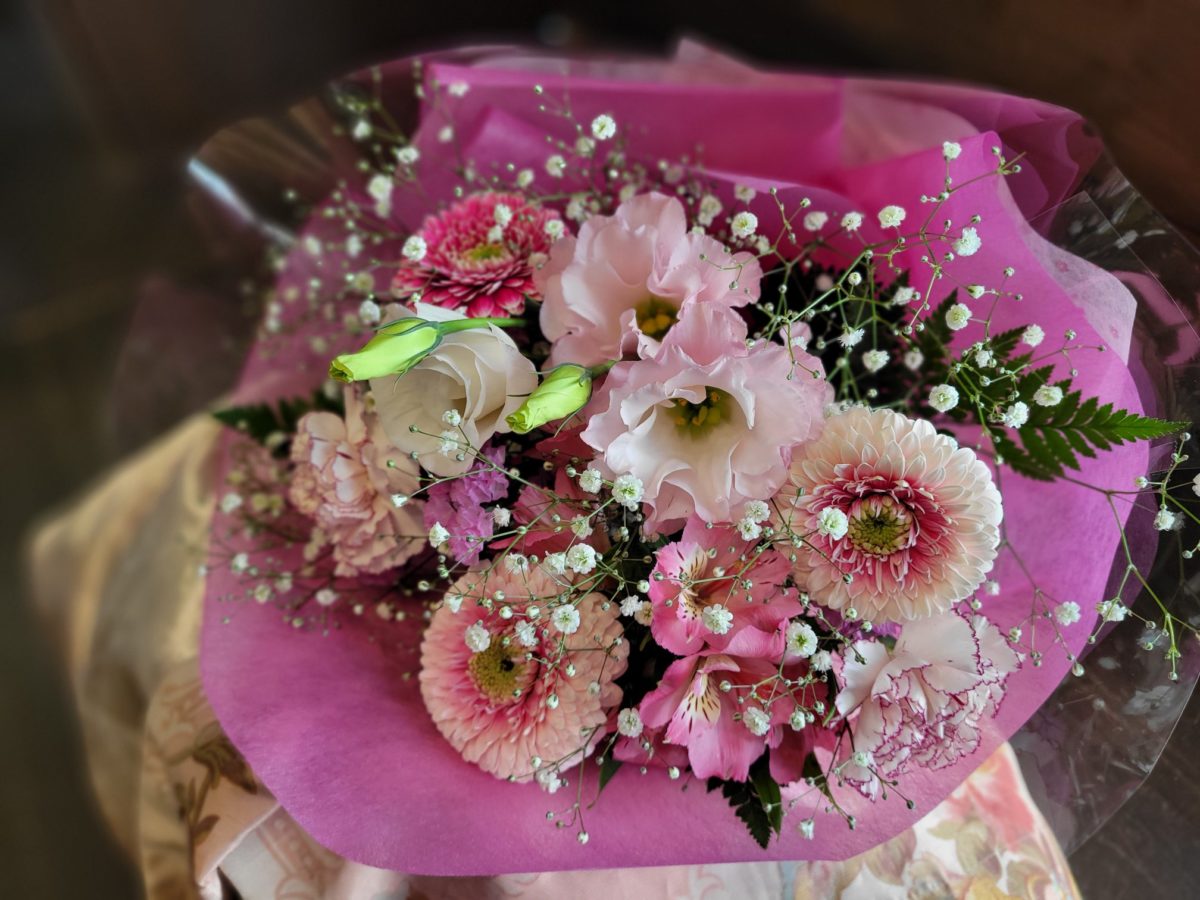 いろんなお花をミックスした 春らしい感じの花束