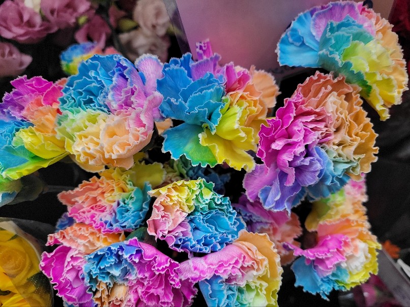 レインボーのカーネーション 1本でもアクセントになるレインボーのカーネーション お部屋の一輪挿しにもどうぞ